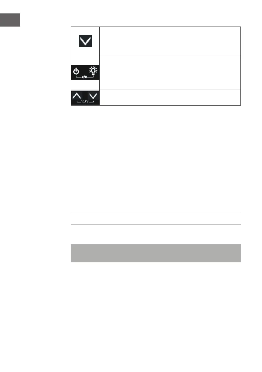 RUNTER: Drücken Sie die Taste, um die eingestellte Temperatur in