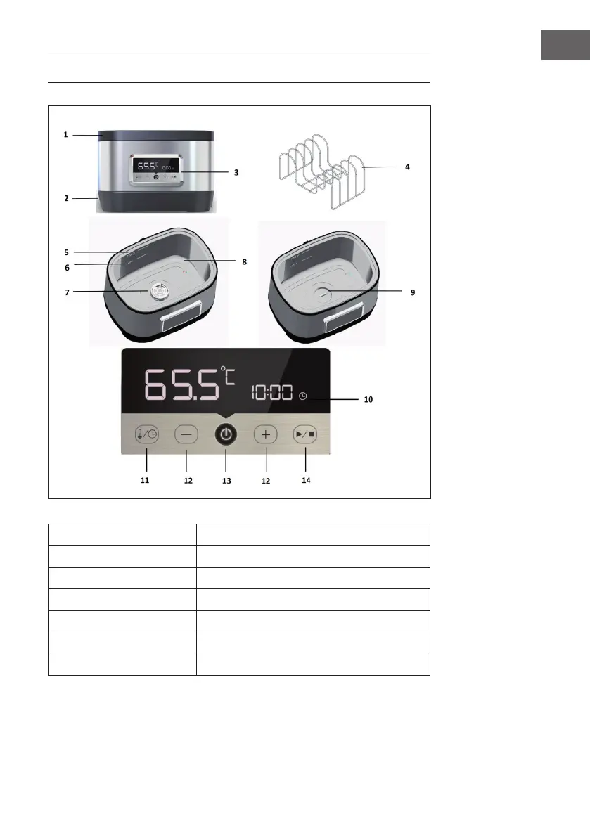 5 Livello Massimo 12 Tasto di regolazione per tempo e temperatura