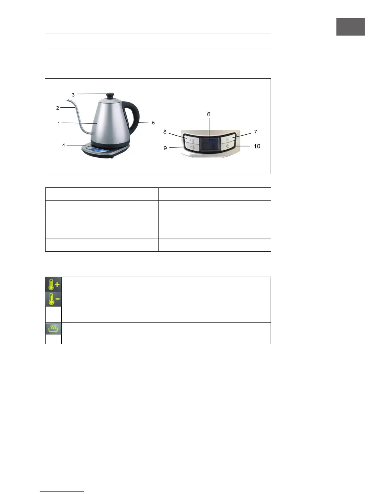 2 Pitorro de acero inoxidable 7 Función Mantener caliente
