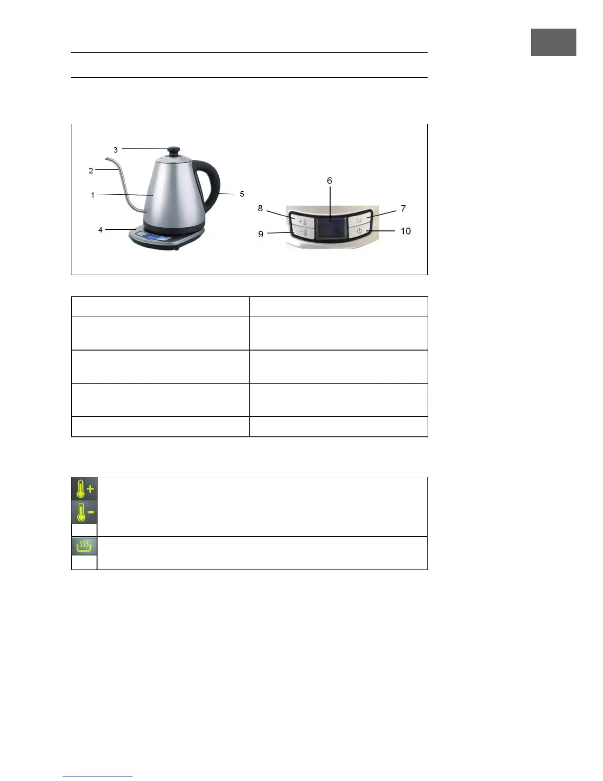 2 Ugello in acciaio inox 7 Tasto per mantenere la temperatura