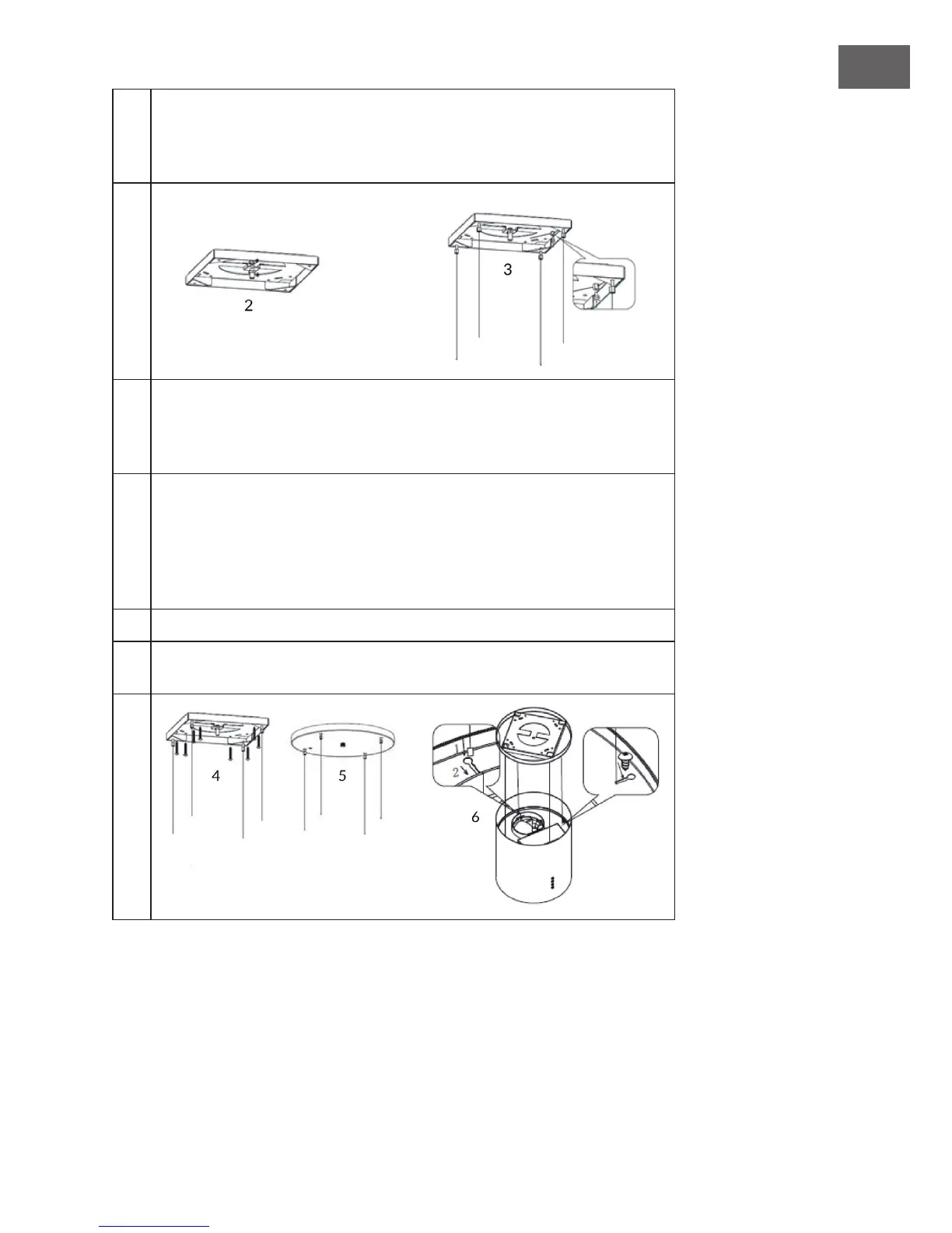 de suspension et percer 8 trous dans le plafond. Fixer alors la plaque de