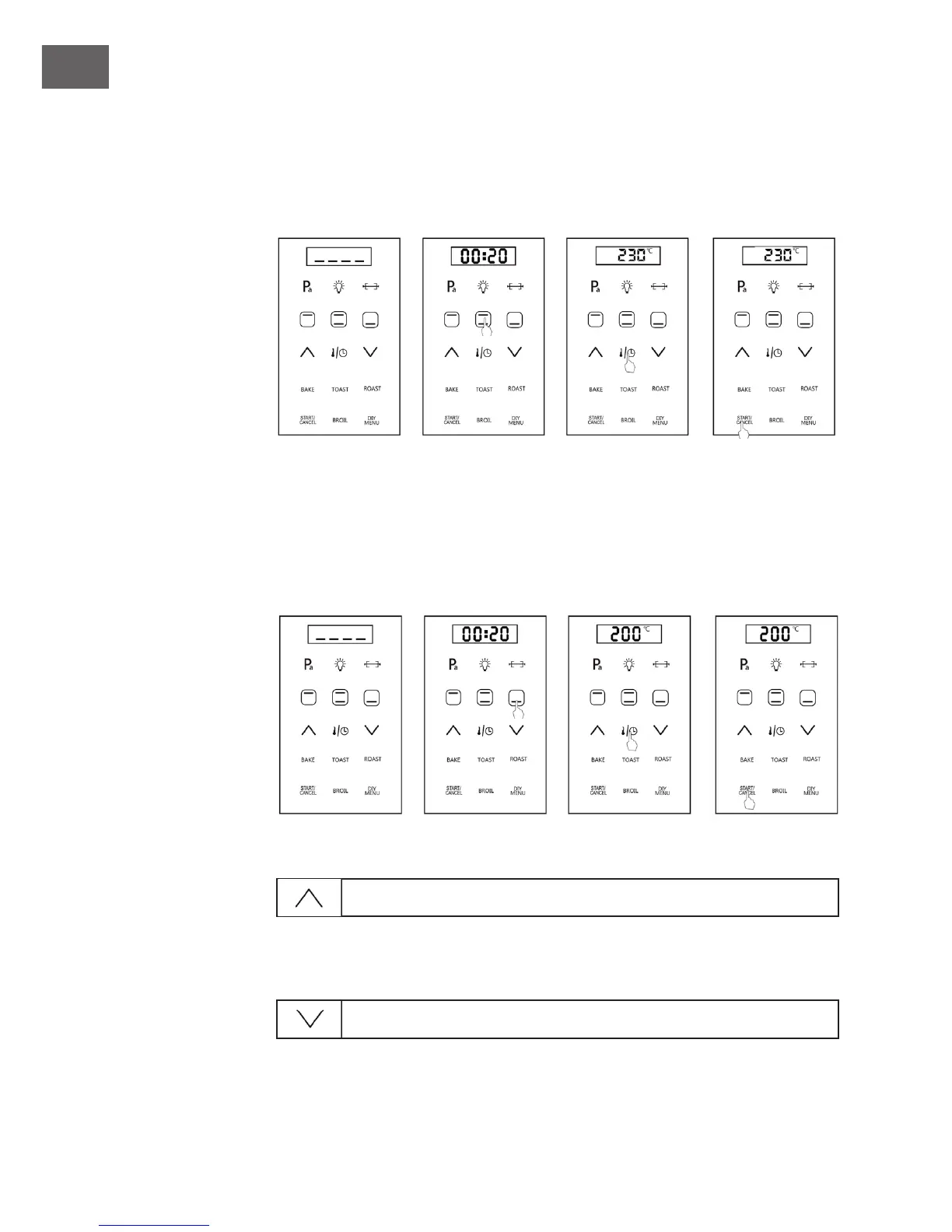 • Drücken Sie die Taste OBER- UND UNTERHITZE. Die voreingestellte Zeit „00:20“