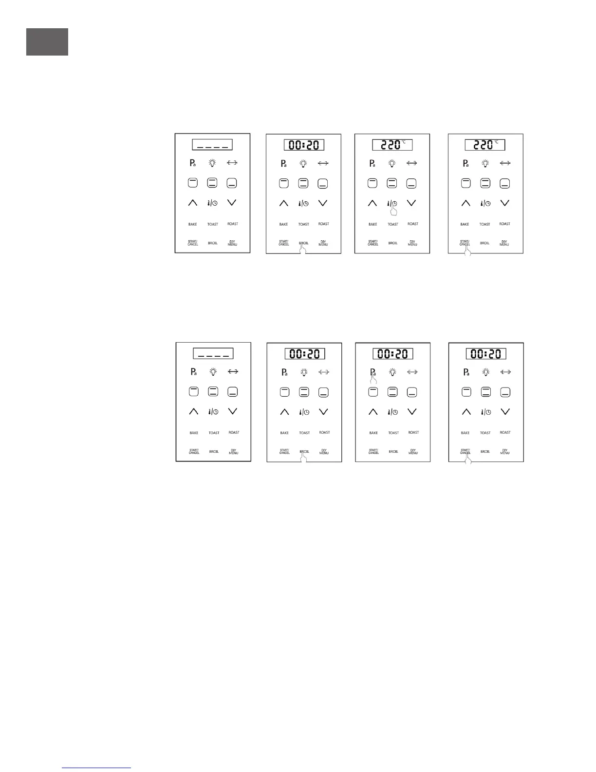 1. Premere BROIL. Il tempo predenito “00:20” viene mostrato sullo schermo LED.