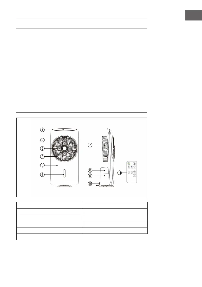 4 Fan blades 10 power cable