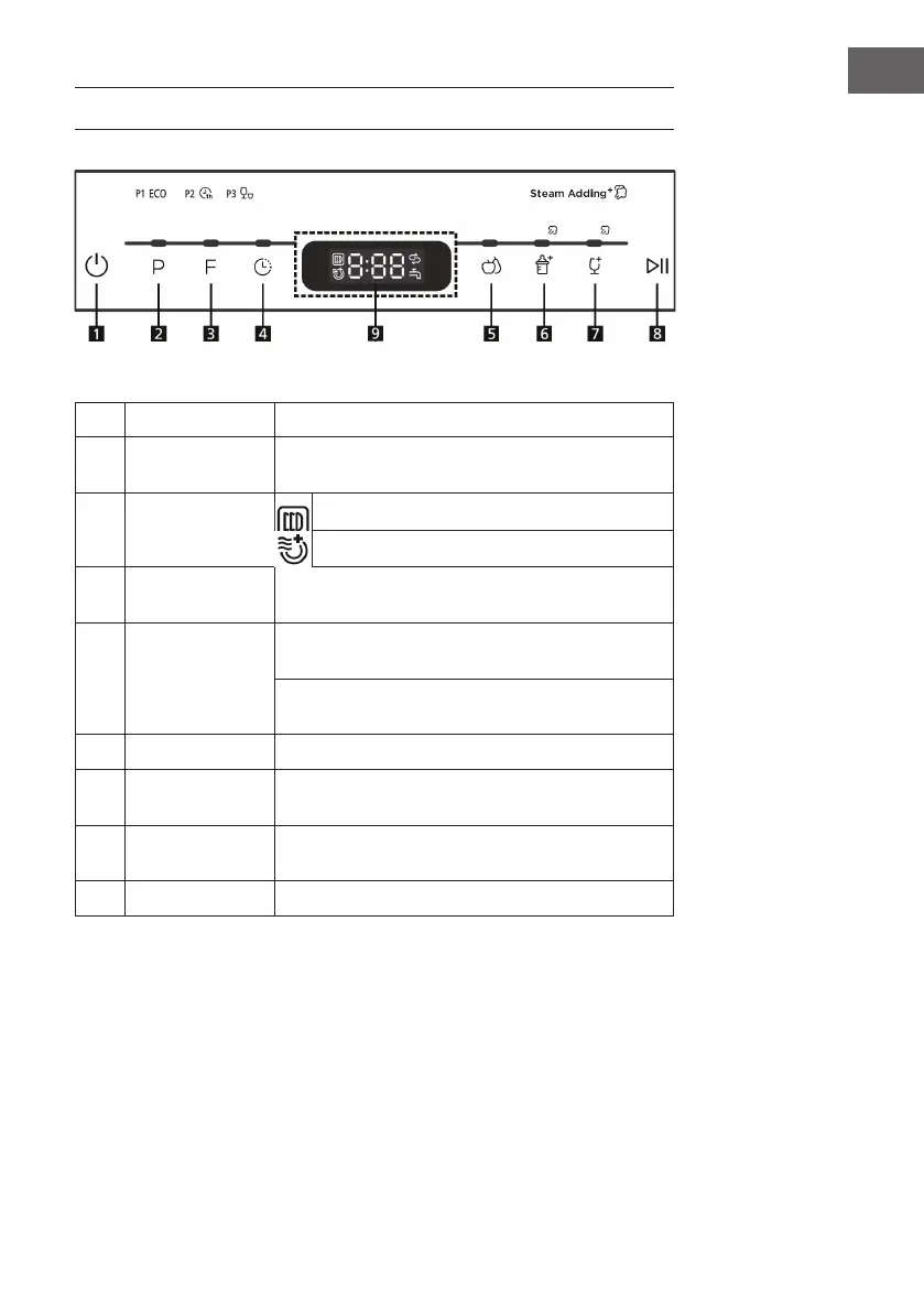 Press this button to start or stop the dishwasher. The
