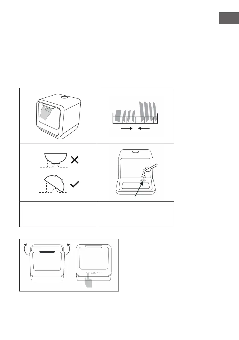 Ouvrez la porte, mettez la vaisselle dans le panier et ajoutez du produit de vaisselle.
