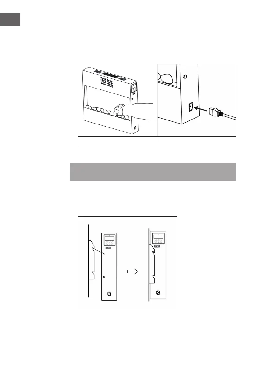 1 Poggiare il pannello in vetro sui ganci sui lati del camino facendo attenzione (v.
