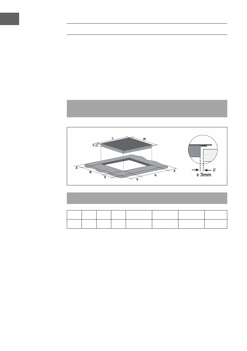 bleiben. Stellen Sie sicher, dass die Dicke der Arbeitsplatte mindestens 30 mm beträgt.