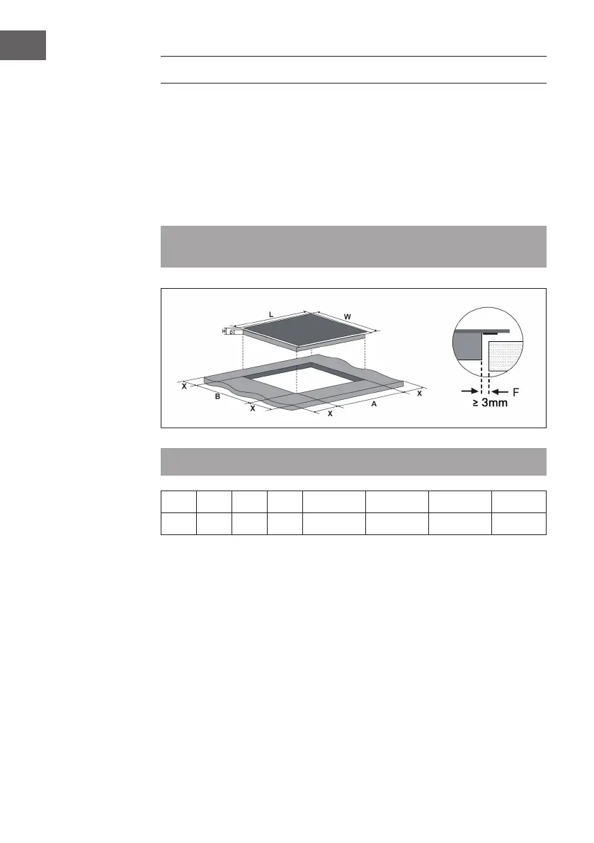l‘intérieur du plan de travail doit être d‘au moins 3 mm.