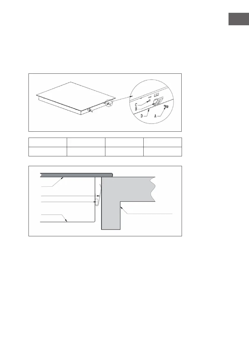 2. Fixez l‘appareil sur le plan de travail en installant quatre supports sous l‘appareil