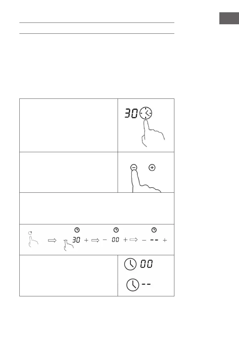 durée soit à 0. La fonction de minuterie est annulée, l‘écran afche d‘abord « 00 »