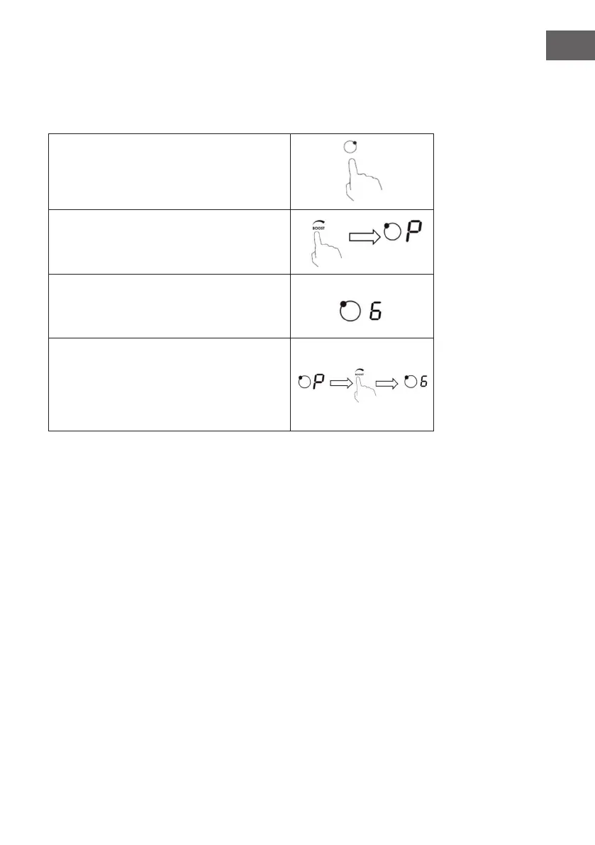 “P” and “9” symbols will ash on the display of the selected zone and power level will