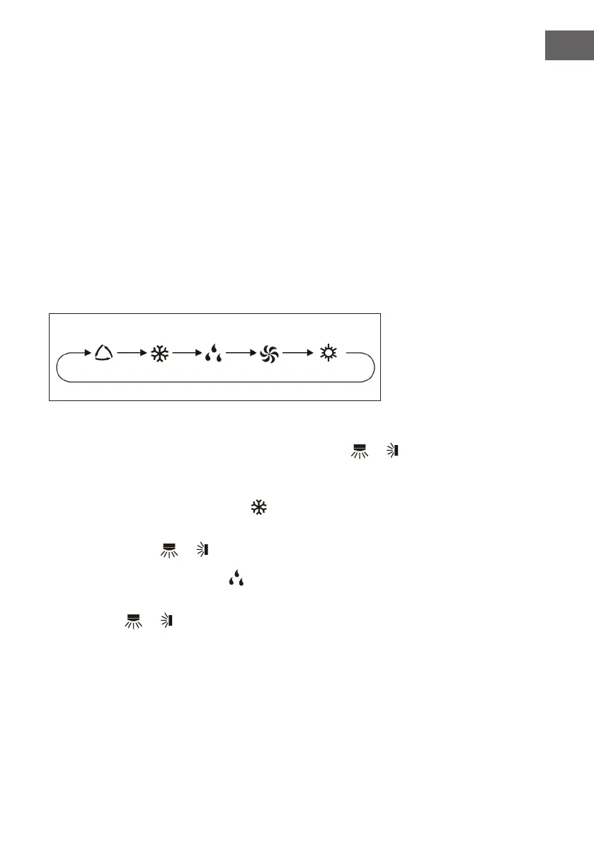 • Si vous sélectionnez le mode de refroidissement, l‘appareil fonctionne en mode de