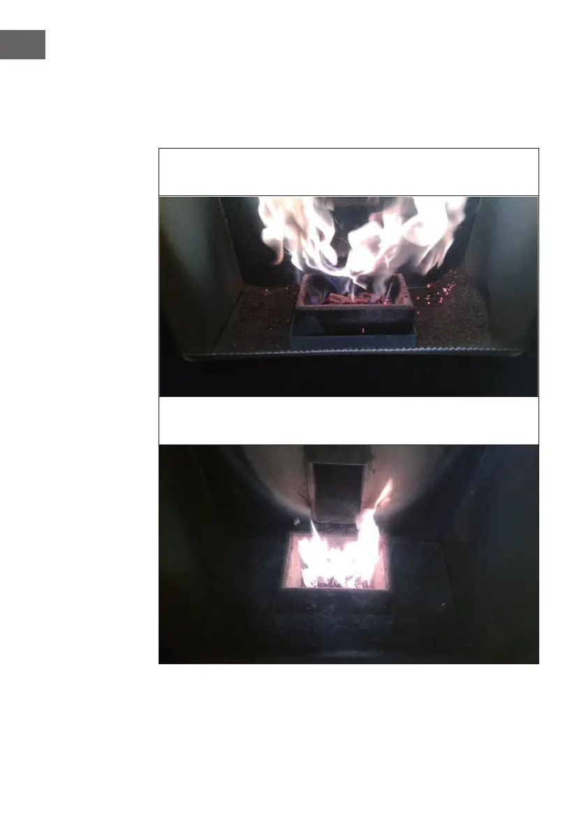à cendres est pratiquement vide. La amme (riche en oxygène) scintille en
