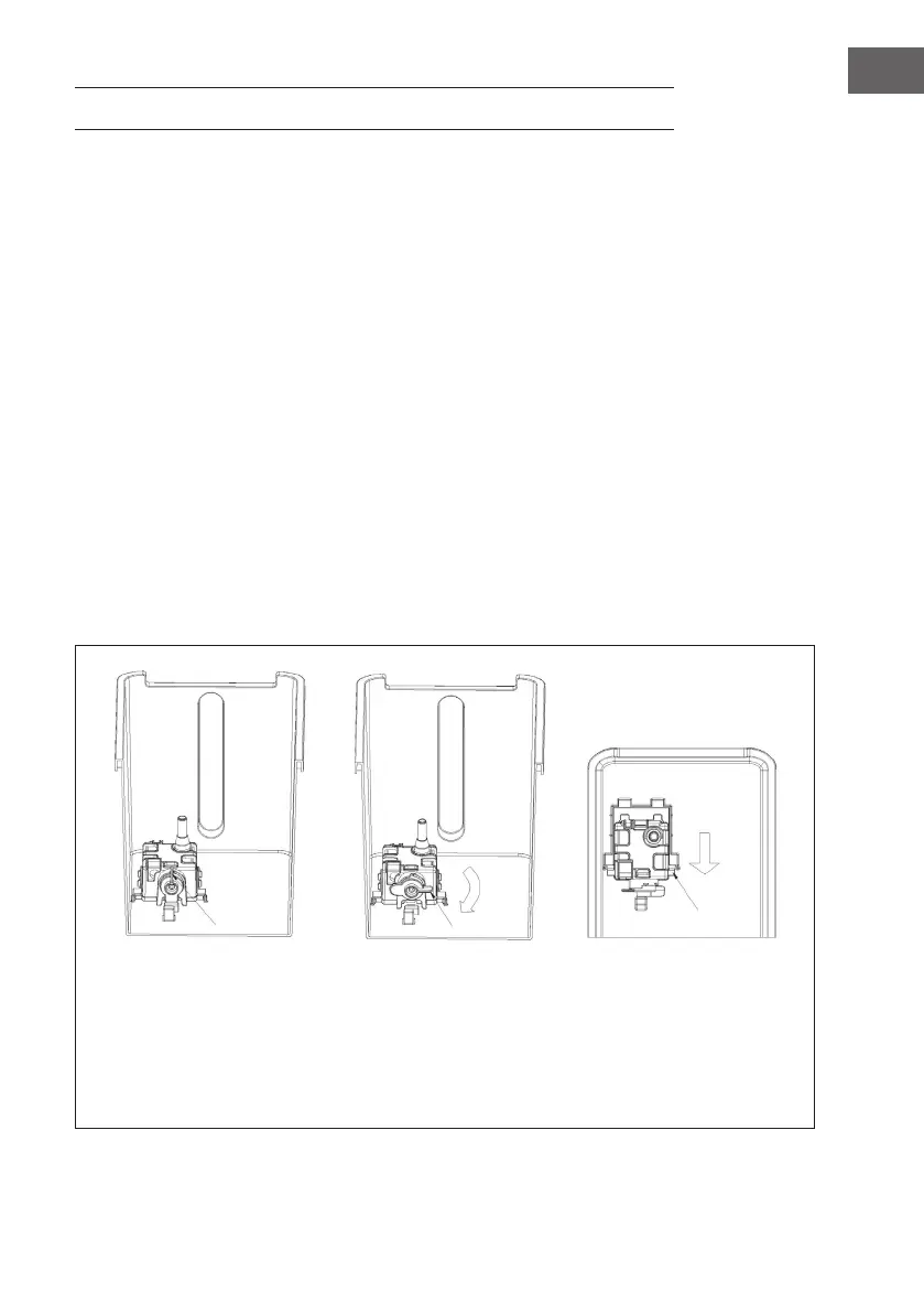 • Gehen Sie mit Ihrer Hand in den Wassertank hinein und drehen Sie die Fixierung