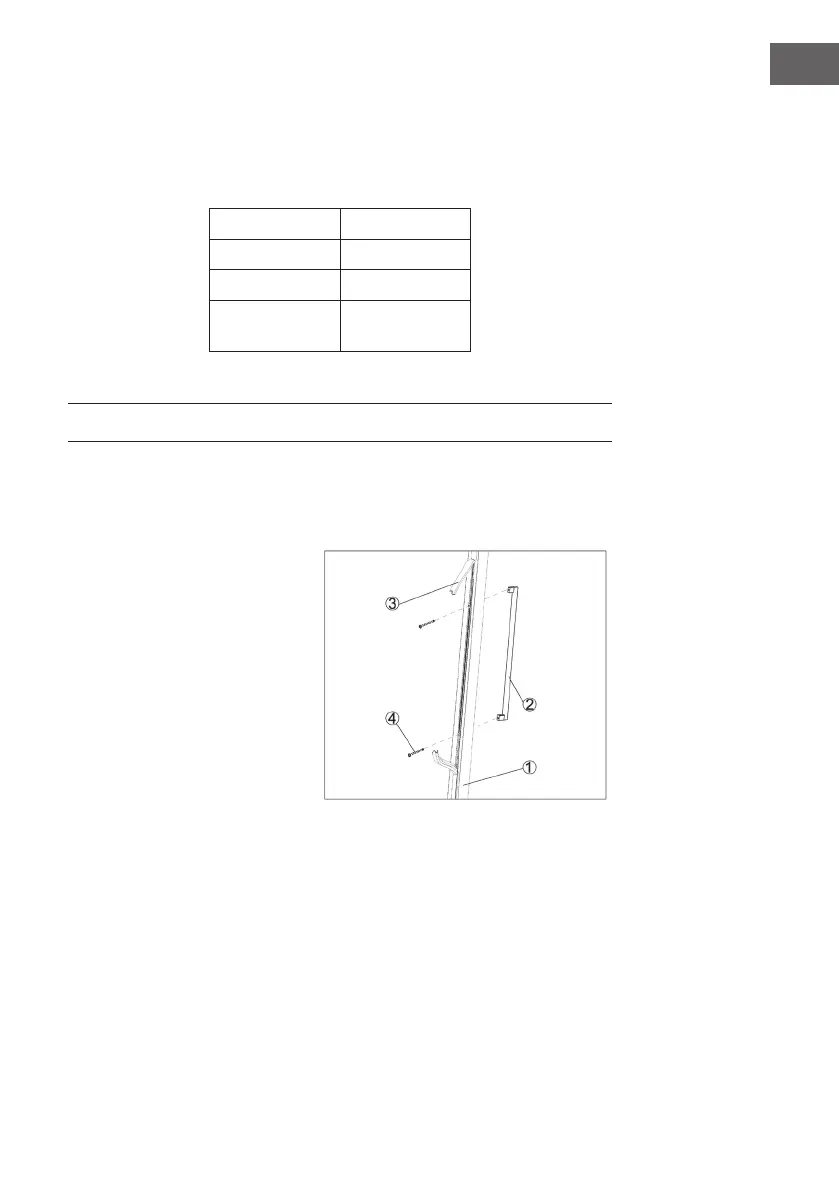 Installing the door handle and reversing the door of the wine cooler