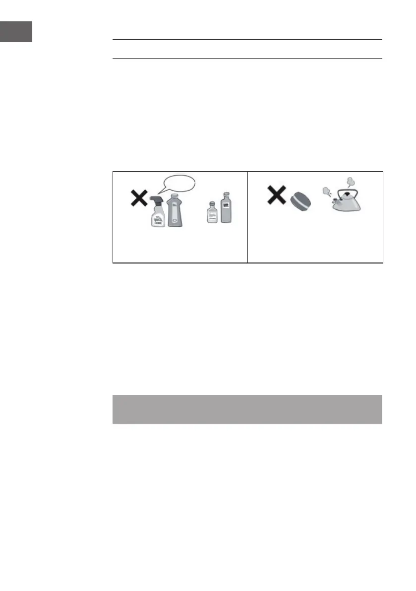 • Non utilizzare solventi organici, detergenti alcalini, acqua bollente, detersivo o