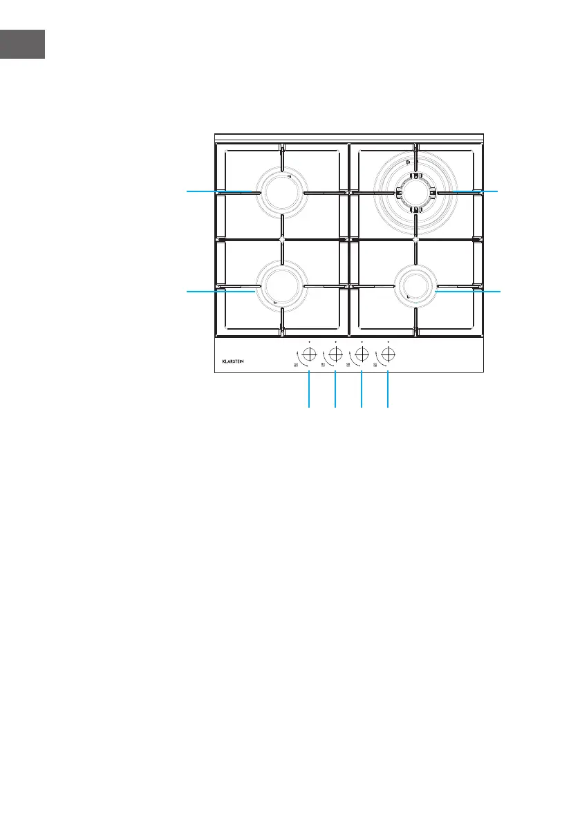 3 Control knob for auxiliary burner (bottom right)