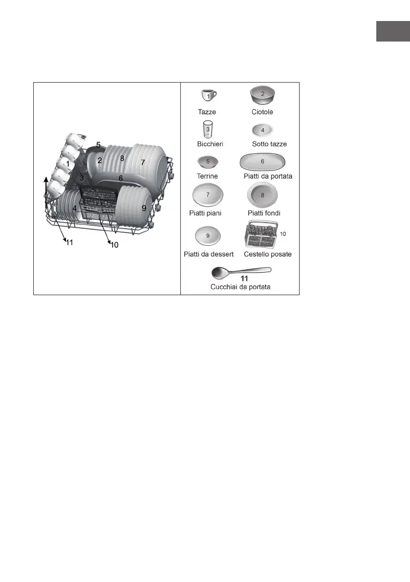 Posizionare le stoviglie nel cestello in modo che gli irroratori ruotino liberamente.