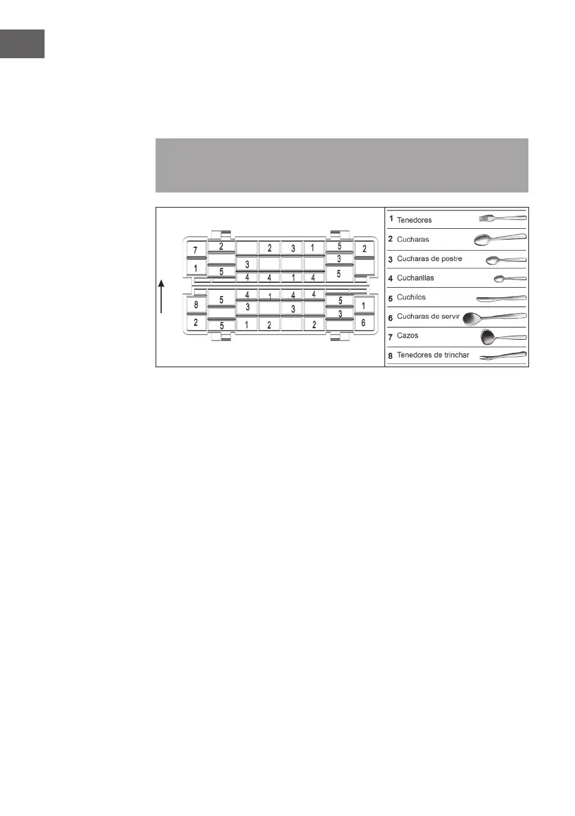 Coloque los cubiertos en el cesto con los mangos hacia abajo. Coloque las cucharas