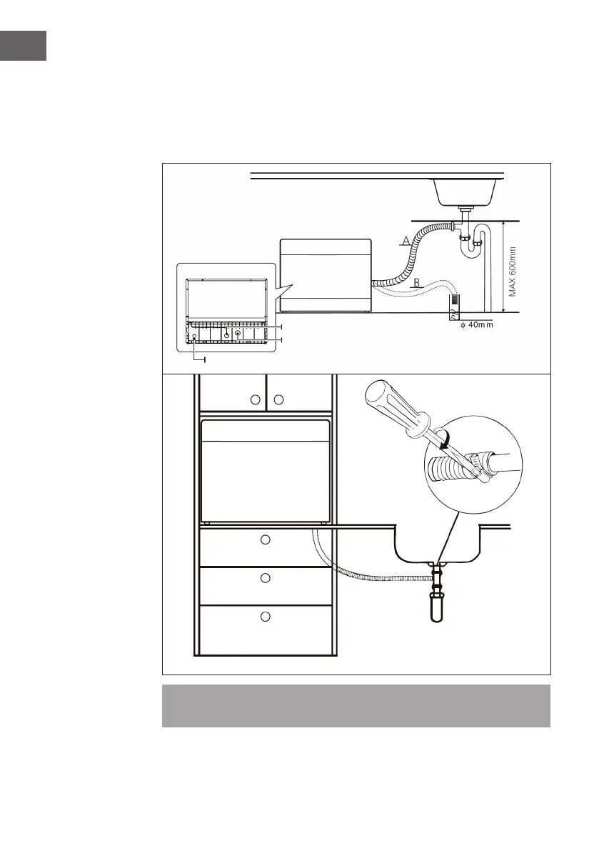 reux. Fixez le tuyau de vidange soit en position A, soit en position B.