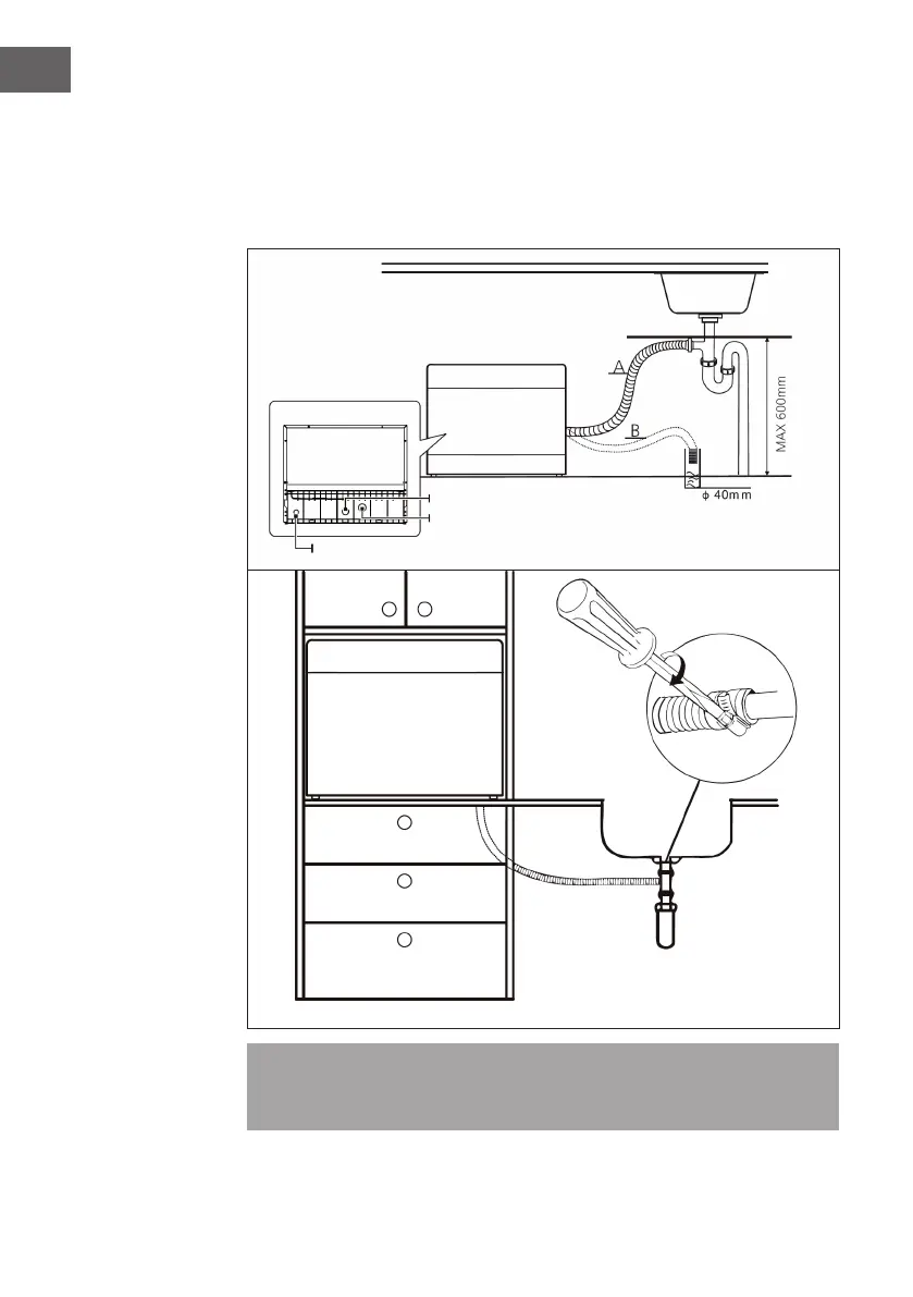 usso di ritorno dell’acqua. Fissare il tubo di scarico in posizione A o B.
