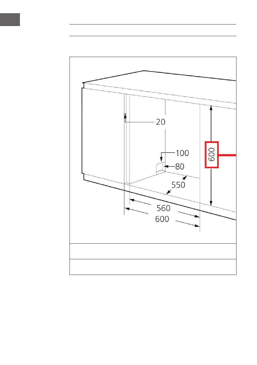 Er mag minder dan 5 mm ruimte zijn tussen de bovenkant van de vaatwasser en de