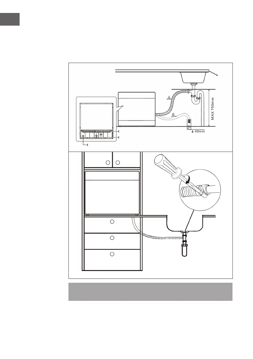 hose in water to avoid backow. Fix the drain hose either as in position A or B.