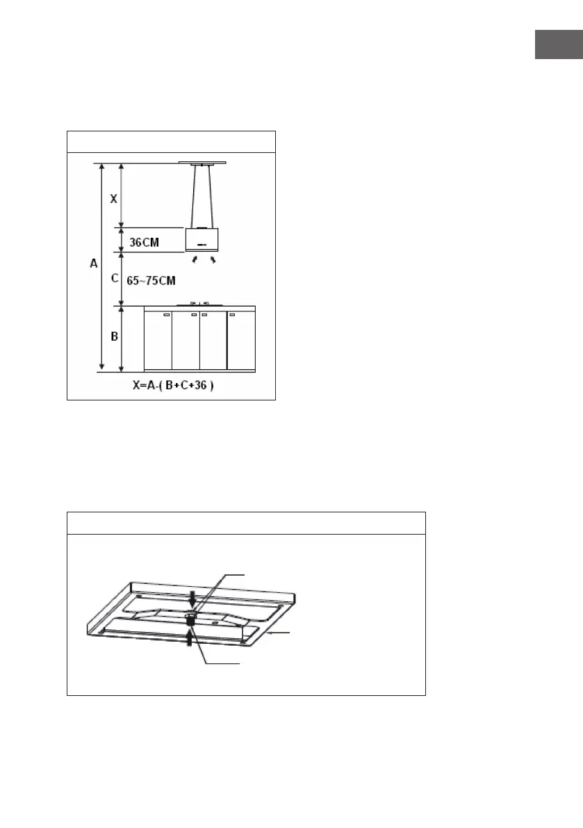 2. La hotte aspirante doit être installée à une distance de 65 à 75 cm au-dessus de la
