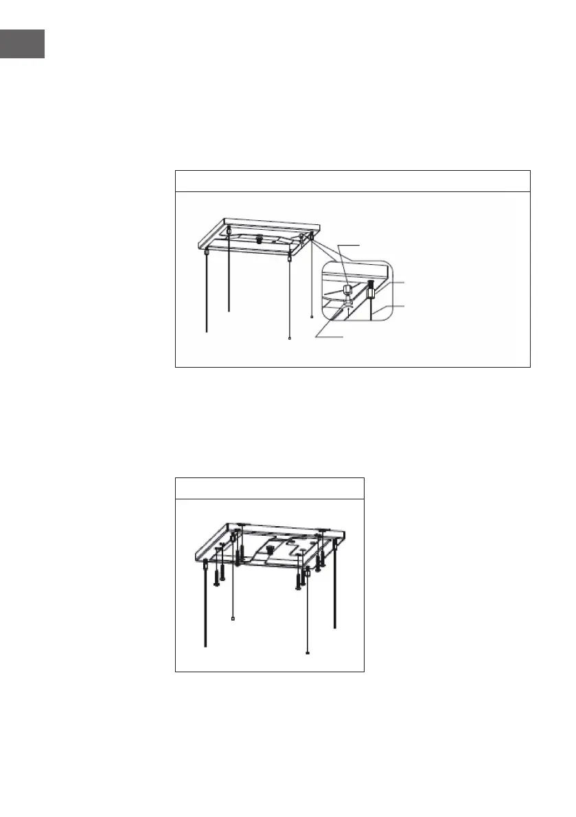 markierten Stellen zu befestigen. Achten Sie dabei darauf, dass die 4 Seile gleich