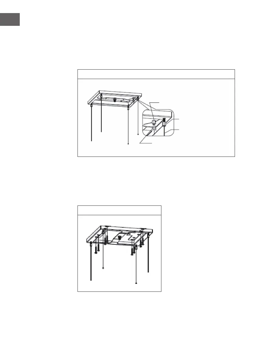 5. Fissare le 4 viti regolabili al pannello di sospensione, ruotarle alla lunghezza giusta