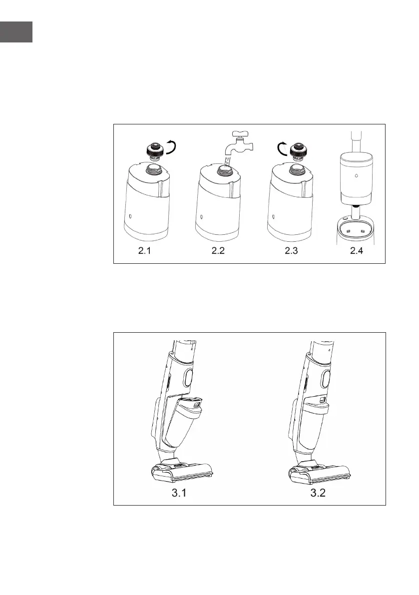 Schrauben Sie die Wassertankabdeckung ab (siehe Abbildung 2.1). Befüllen Sie