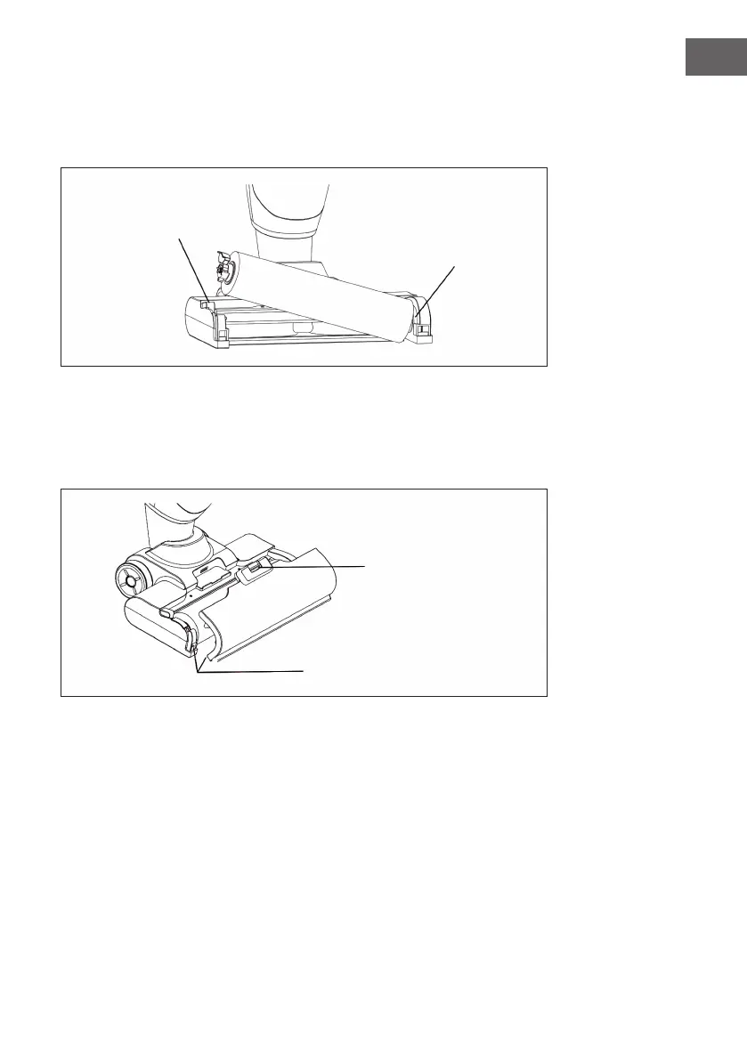 hacia abajo el cepillo de rodillo del lado izquierdo hasta que quede instalado.