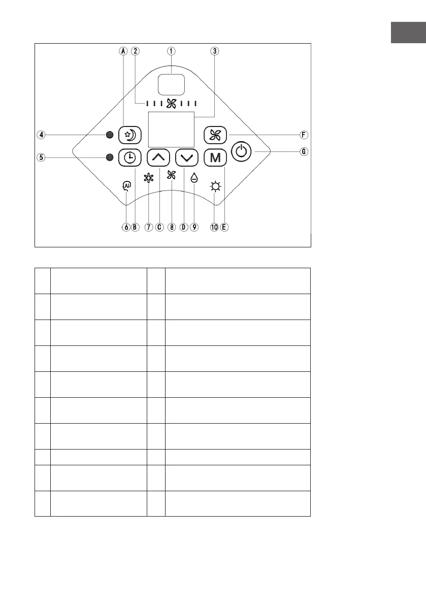 B Tasto del timer 2 Indicazione della ventilazione (alta,