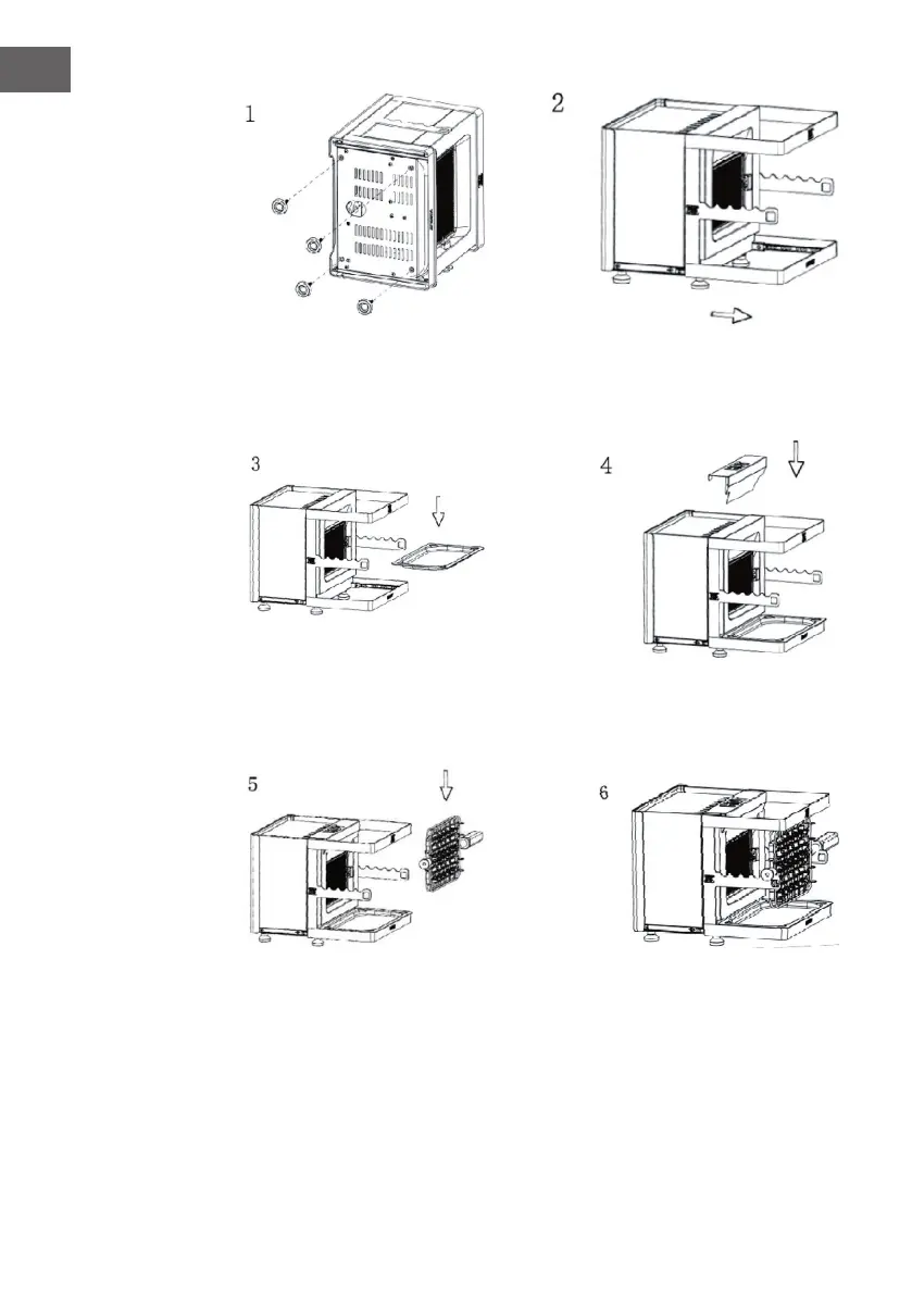 Montare i piedi di appoggio sul lato inferiore. Inserire la vaschetta degli aromi.