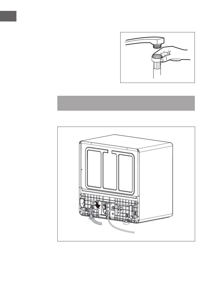 Collegare il condotto di ausso dell'acqua al rubinetto.