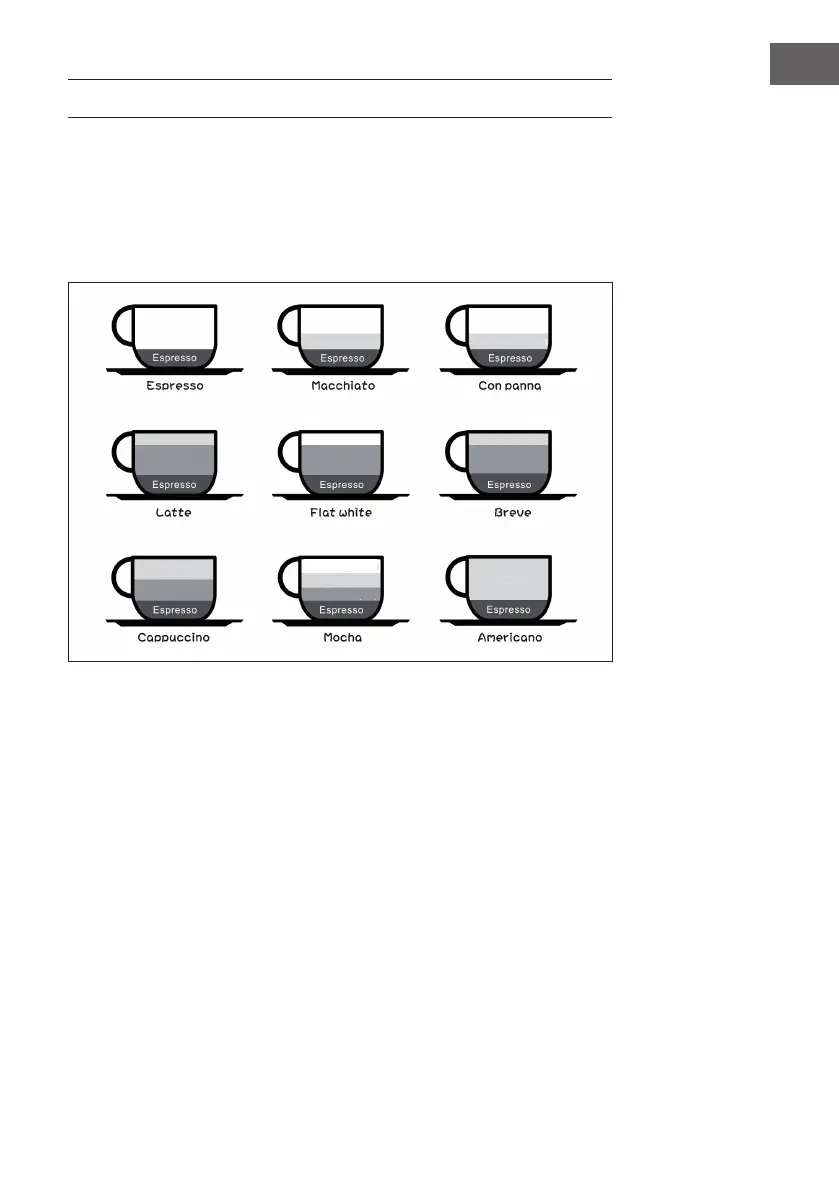 montre diérentes variantes de café avec diérents pourcentages de lait :