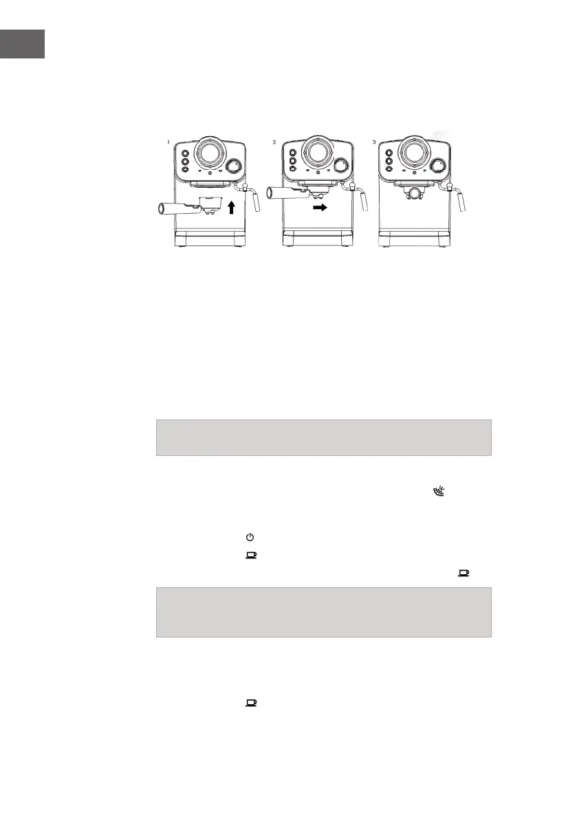 11 The indicator WATER lights up when the water is hot enough to prepare the espresso