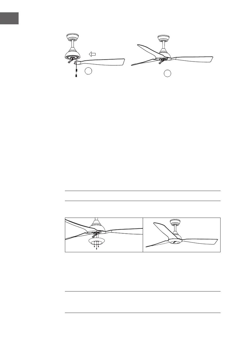 auf, um die Blattarme zu sichern). Richten Sie die Löcher des Flügelarms mit
