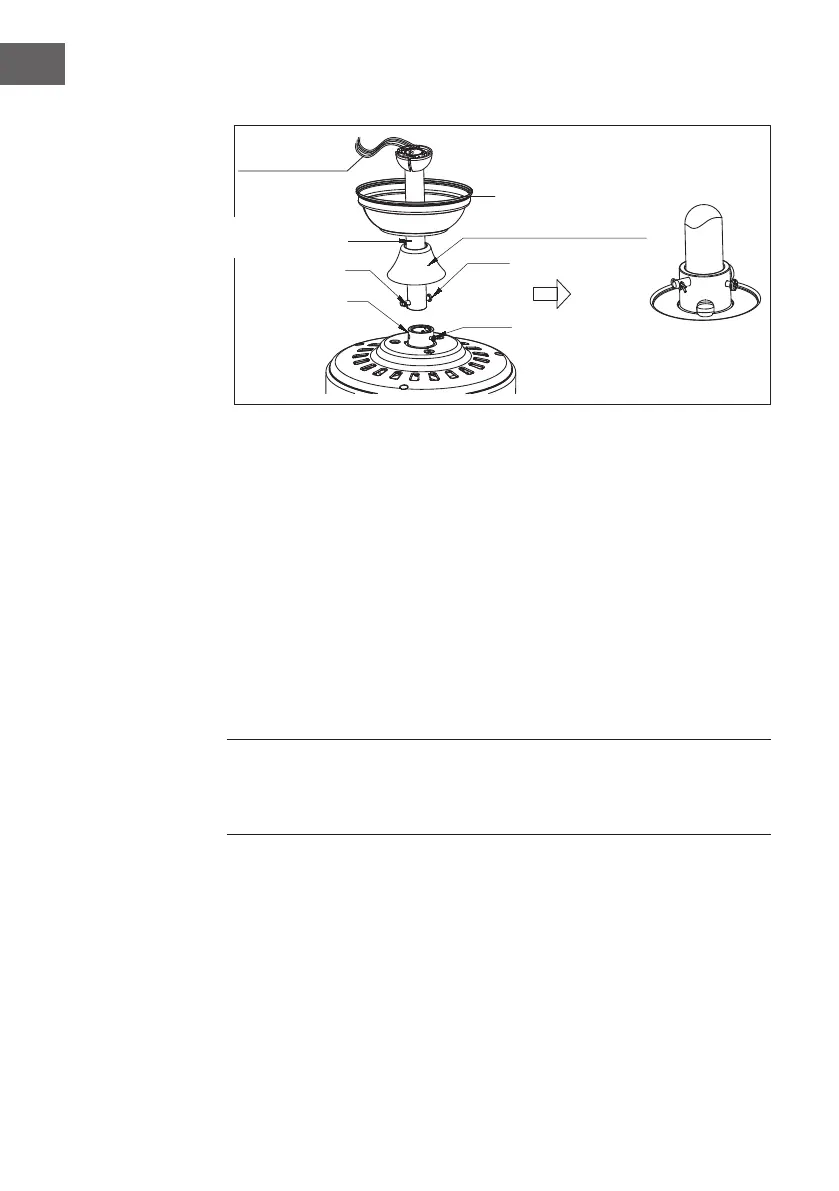 Si desea ampliar la longitud de suspensión de su ventilador, deberá retirar la bola
