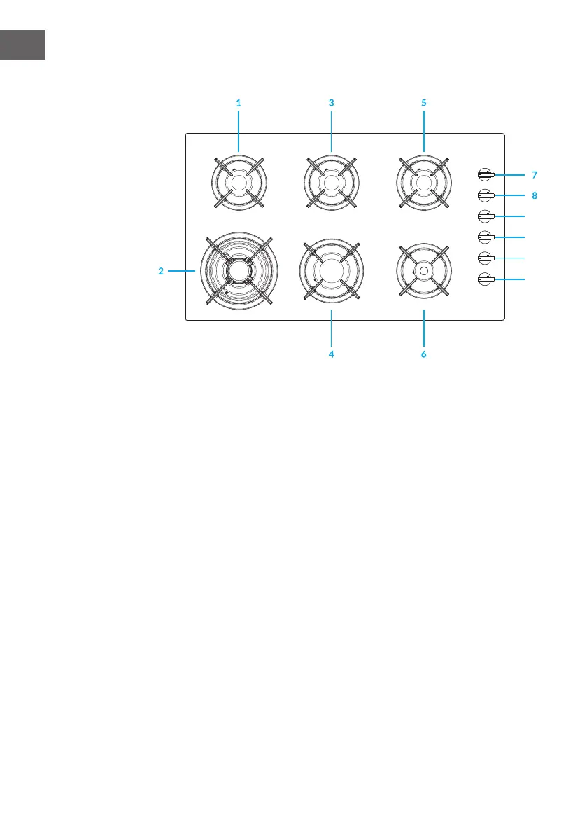 7 Bedienknopf für Normalbrenner (oben rechts)