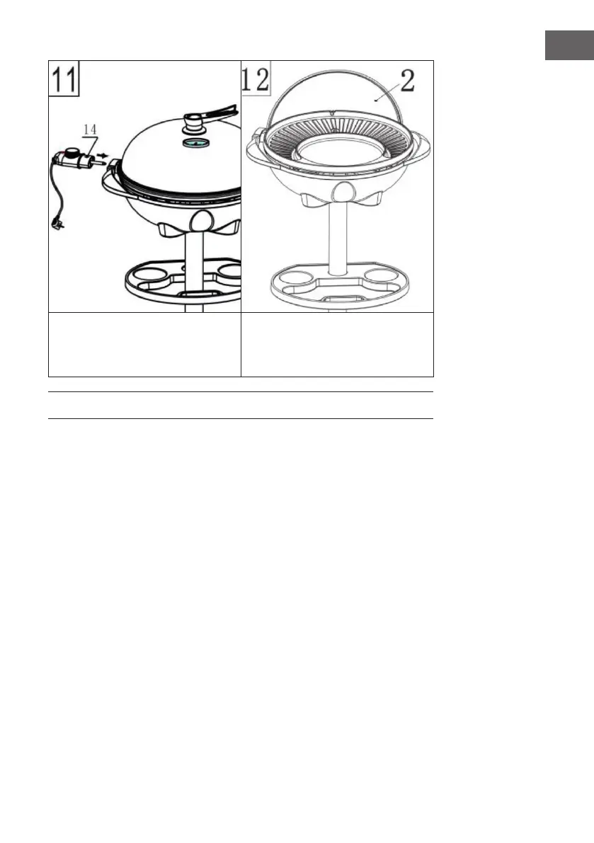 plaque de cuisson (3), le bac collecteur de graisse (4) et le couvercle du barbecue.