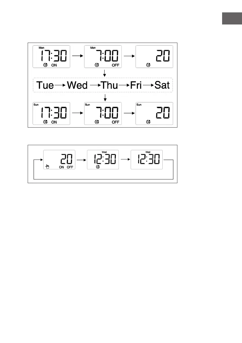 6. Ajuste el programa semanal: Pulse la tecla SET y, con las teclas (+) y (-), ajuste la