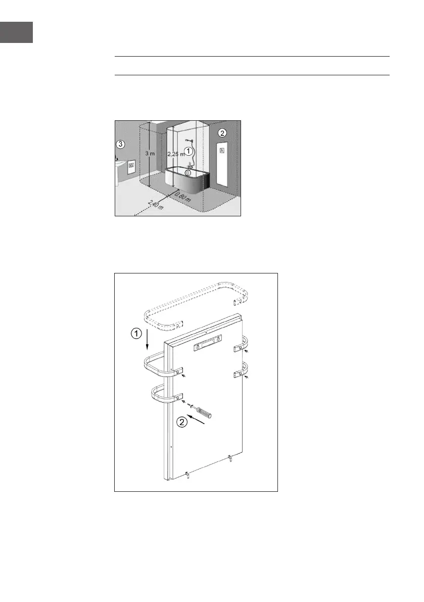 Nous vous recommandons d‘installer le radiateur à au moins 0,6 m de la douche ou de