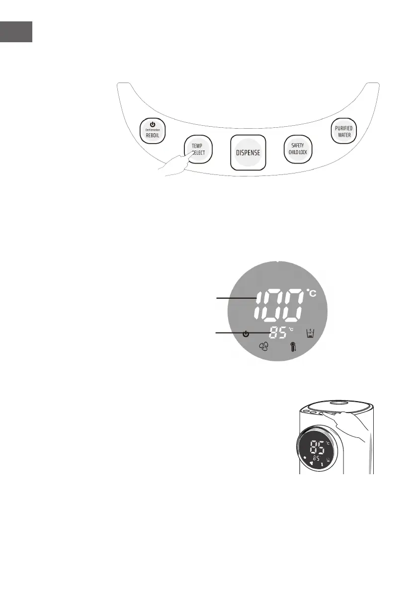 • Drücken Sie die „Temp Select“-Taste, um die Warmhaltetemperatur einzustellen. Sie