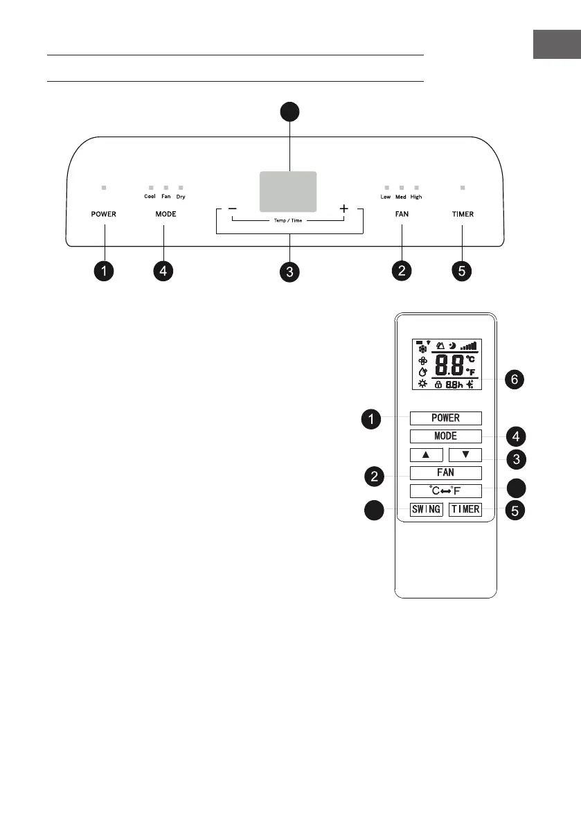 COOL (modalità raffreddamento), FAN (ventola) e DRY