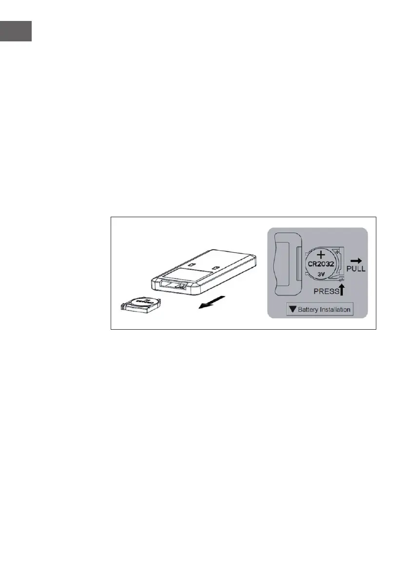 • Insert a new battery (CR2032). Make sure that the positive pole (+) is facing