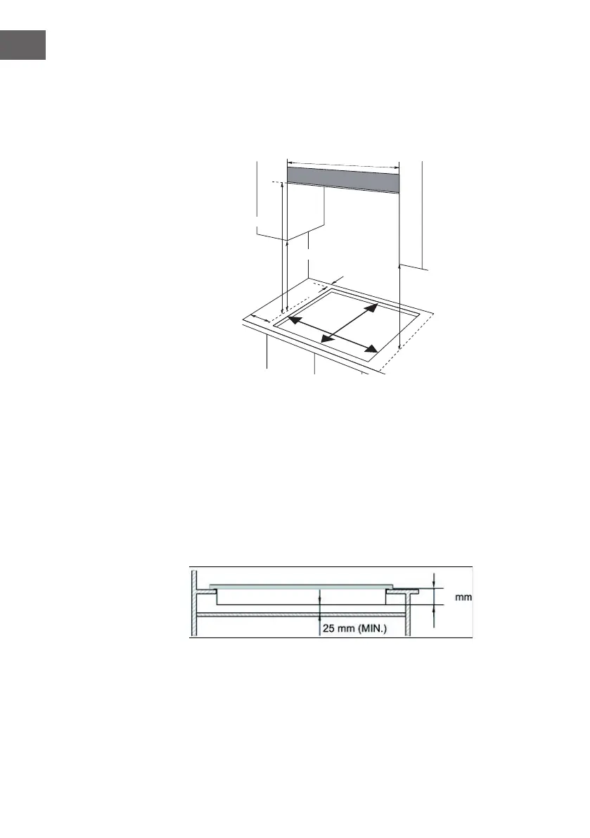• Die Kanten des Gasherdes müssen in einem Mindestabstand von 60 mm zu den
