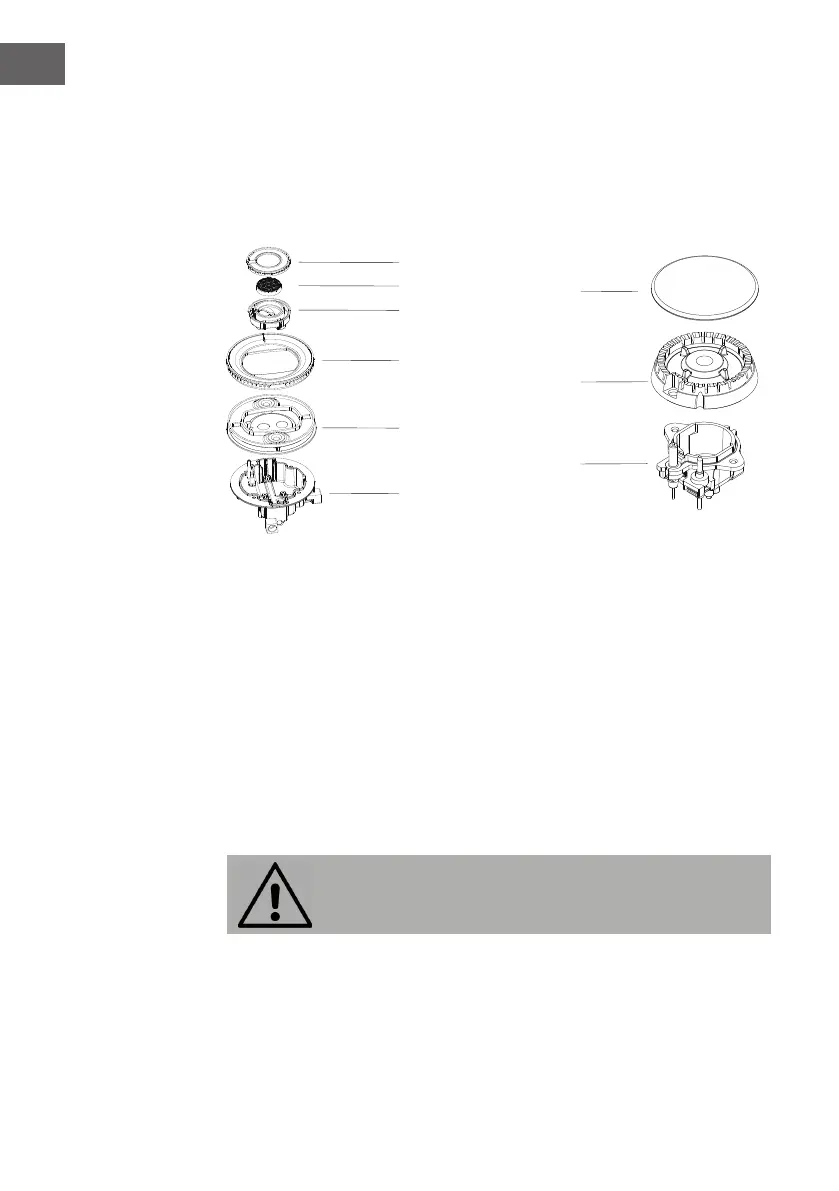 1. Place the ame spreader ( 4 ) on to the burner cup ( 5 ) so that the ignition device