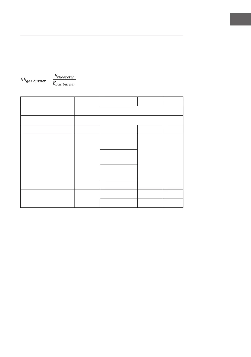 The energy efciency of gas burners in a domestic hob is calculated as follows: